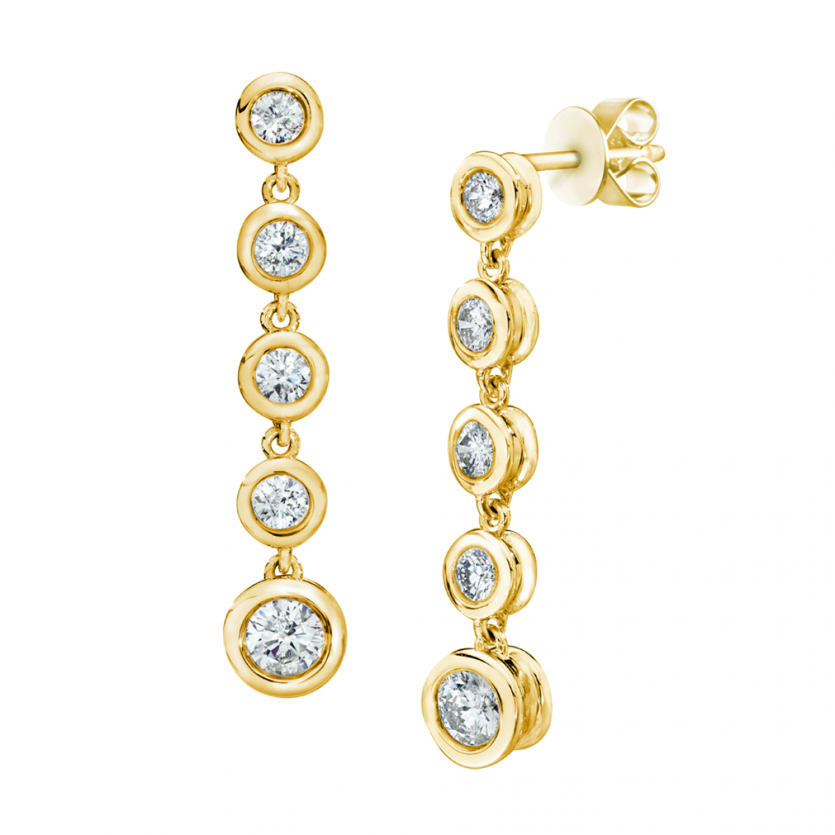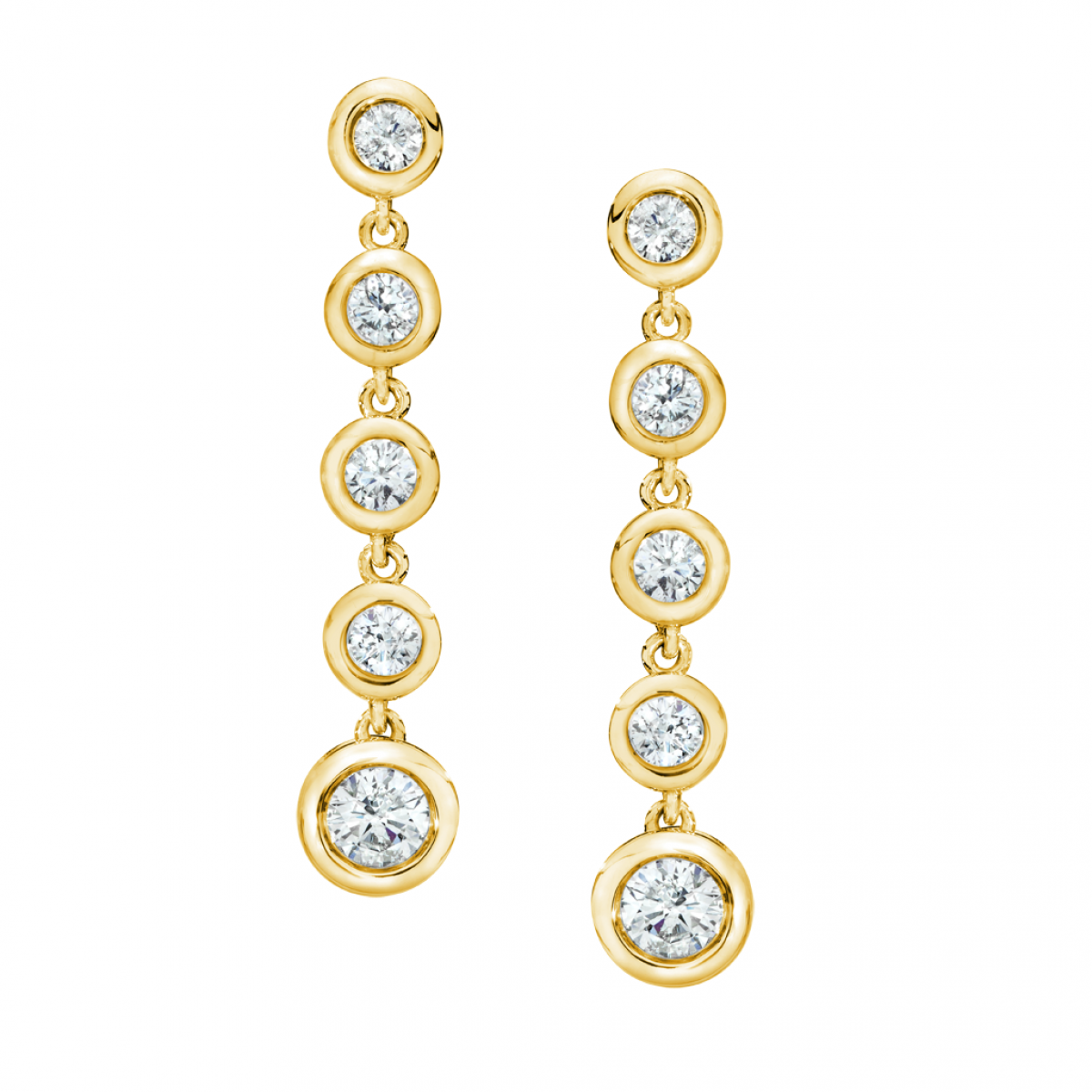 14kt. Yellow Gold 1/2ctw Round Brilliant Cut Five Graduated diamond Bezel Set Dangling Drop Earrings