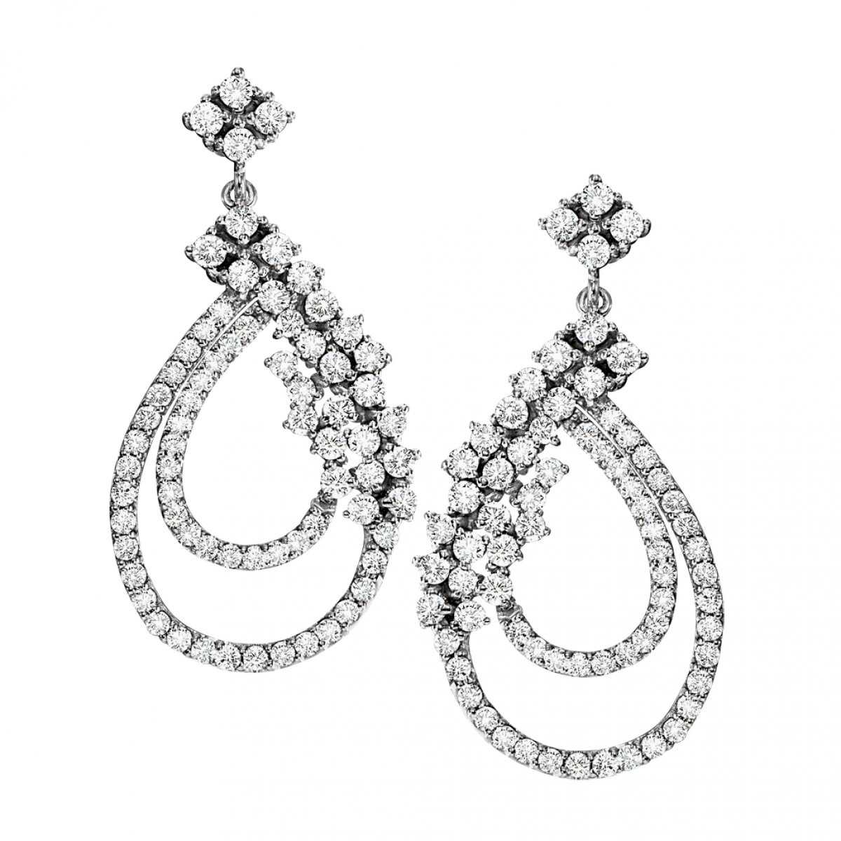 14kt. White gold 2.90ctw Round Brilliant Cut diamond Double Tear drop Luxurious and Grand Dangle Earrings
