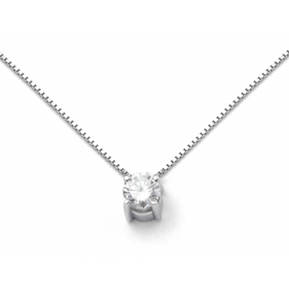 14kt. White Gold 1/3ctw. Round Brilliant Cut diamond Classic Four Prong Diamond Solitaire Slide Pendant on a Box Chain. Available in all sizes and diamond qualities