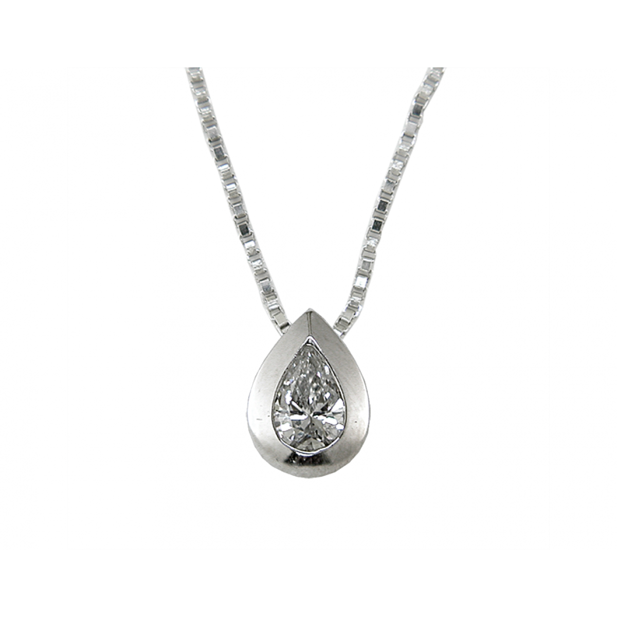 14kt. White Gold 1/4ctw Pear Shaped diamond Bezel set Tear Drop Slide Pendant on a Box Chain