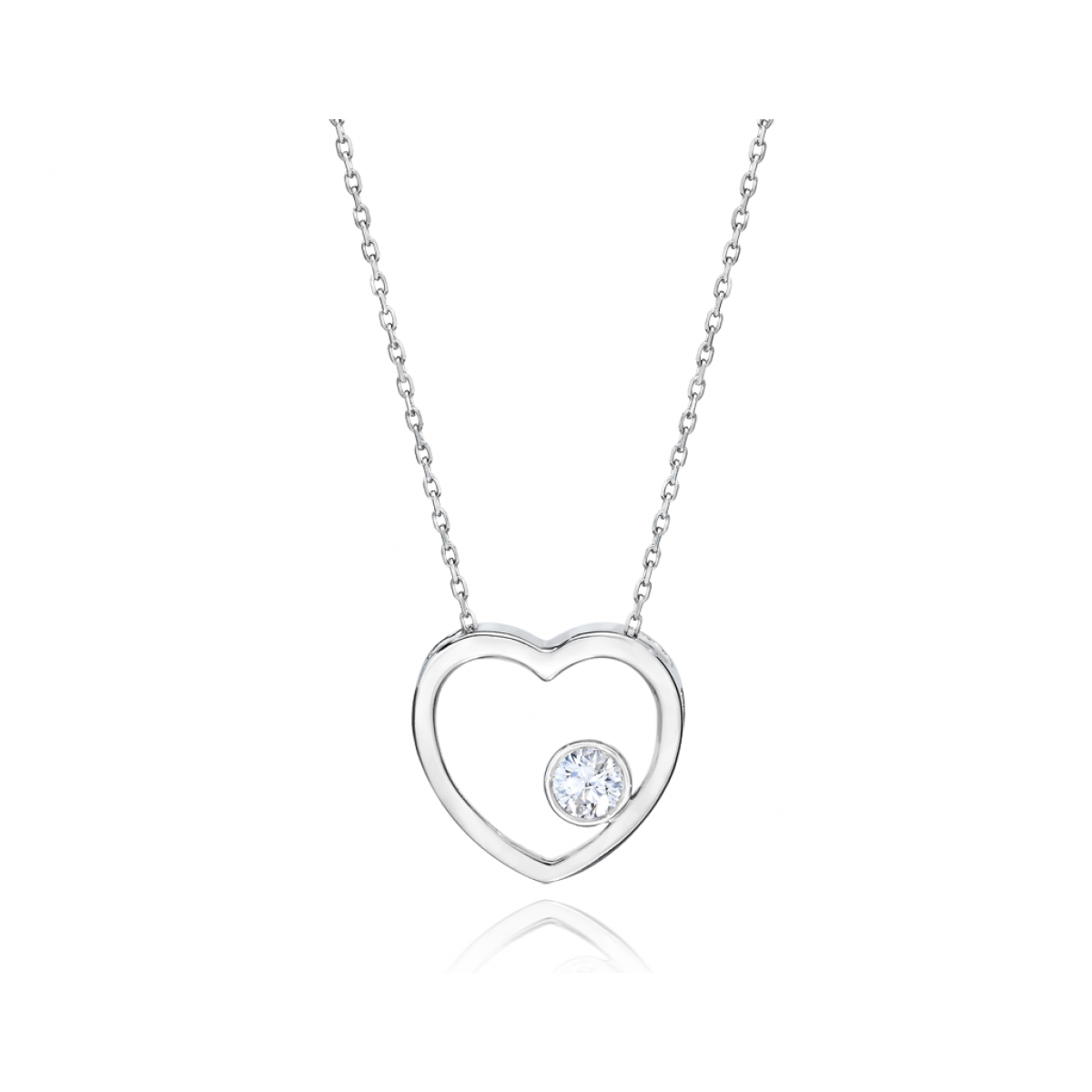 14kt. White Gold 0.14ctw Round Brilliant Cut diamond Bezel set Heart Slide Pendant on a Cable Chain.