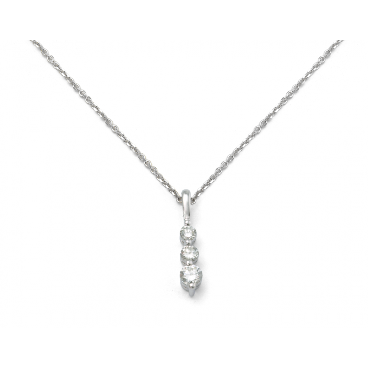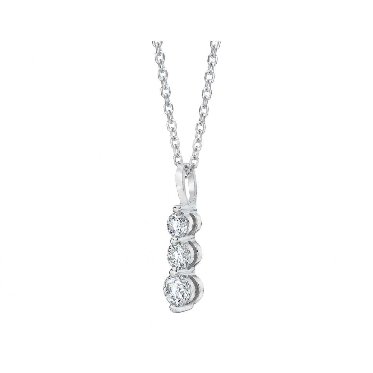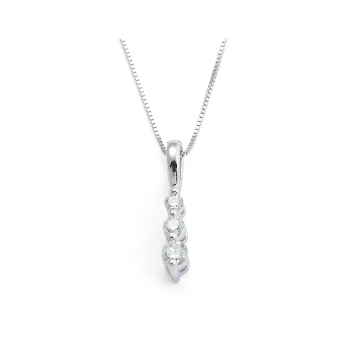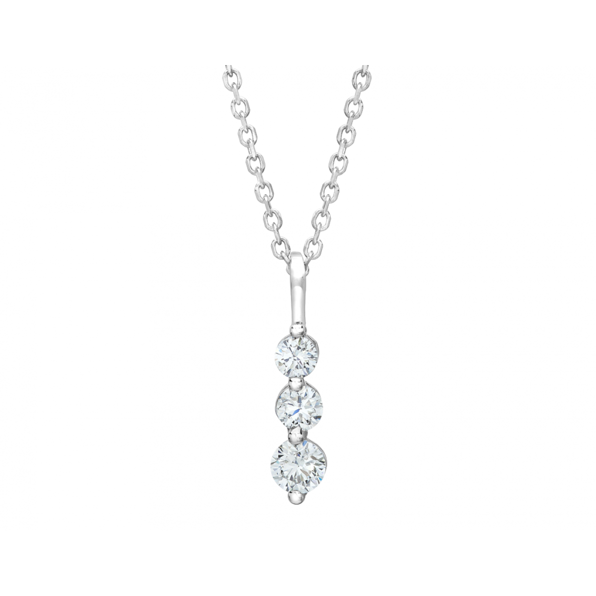 14kt. White Gold 1/4ctw Round Brilliant Cut diamond Shared Prong Three Stone Stick Pendant on a Cable Chain