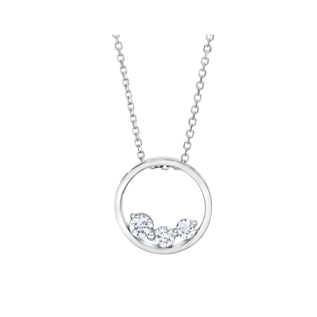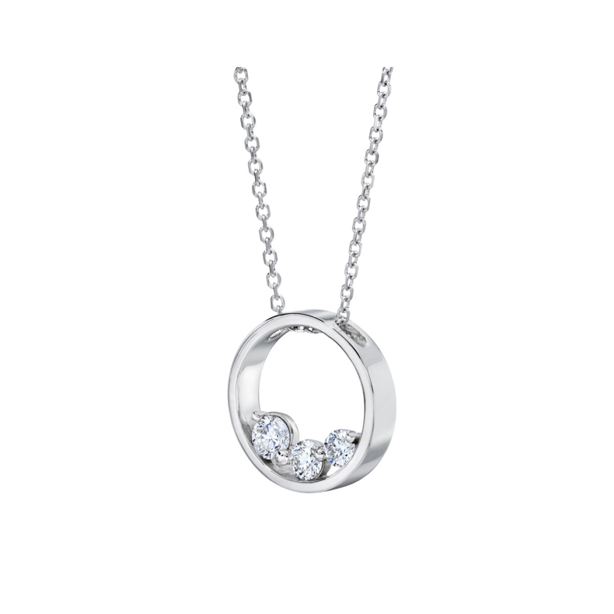 14kt. White Gold 1/3ctw Round Brilliant Cut diamond Three Stone Prong set Circle Slide Pendant on a Cable Chain