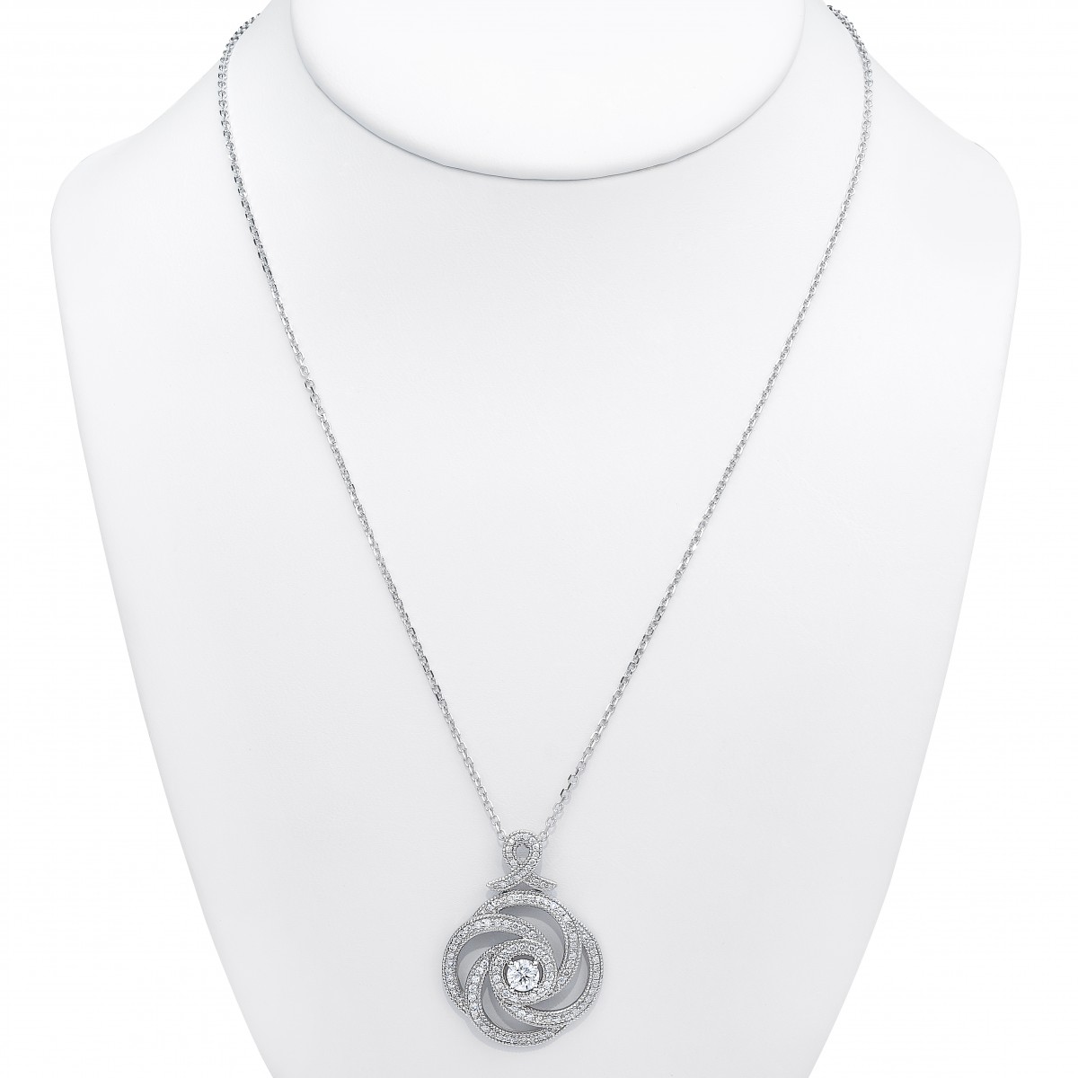 14kt. White Gold 1 1/4ctw RBC diamond Swirl Spiral Slide Pendant on a Chain