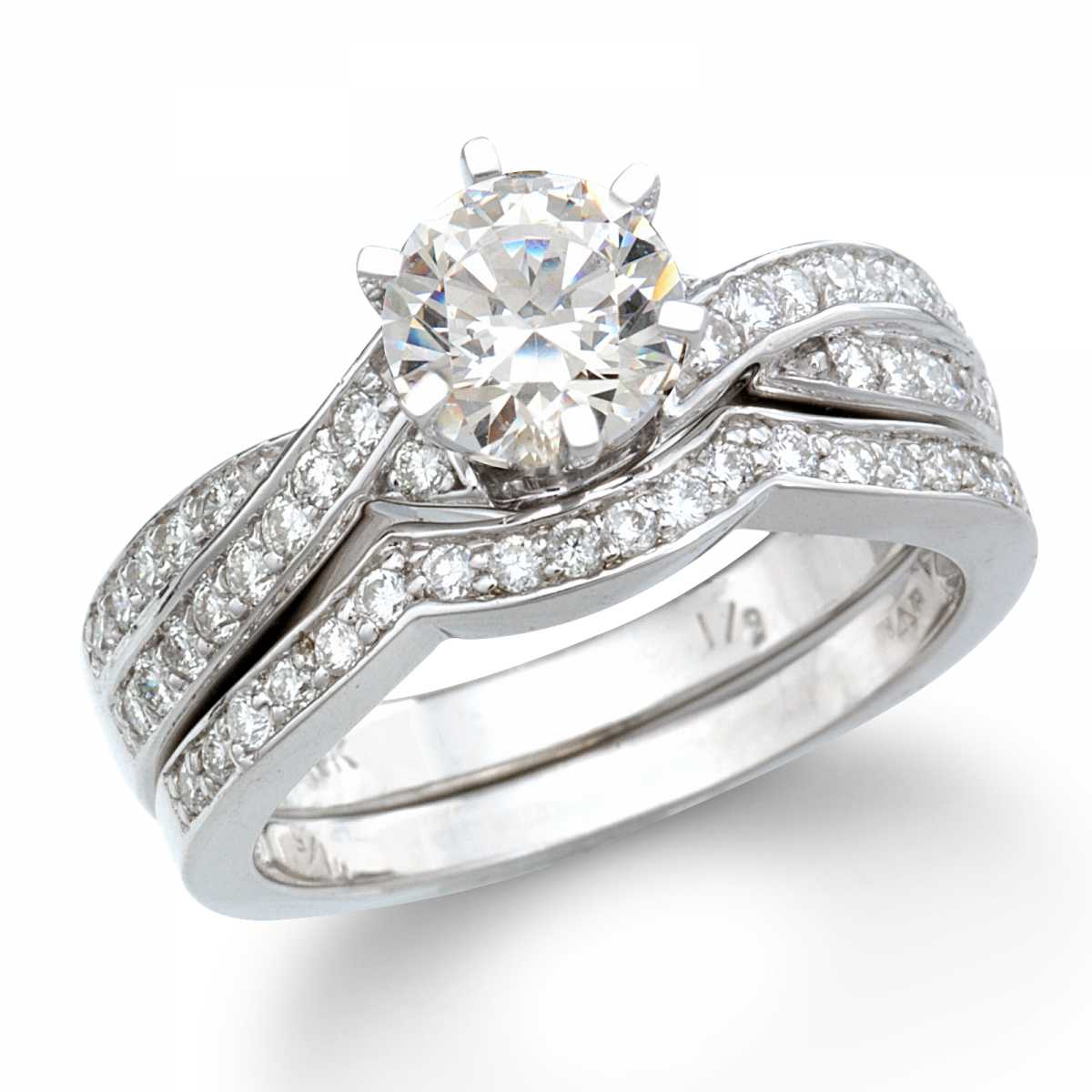 14kt. White Gold 1.00ctw RBC Diamond 2 PC Bridal Set, Twist Design Shank Engagement Ring with Diamond Studded Shadow Band