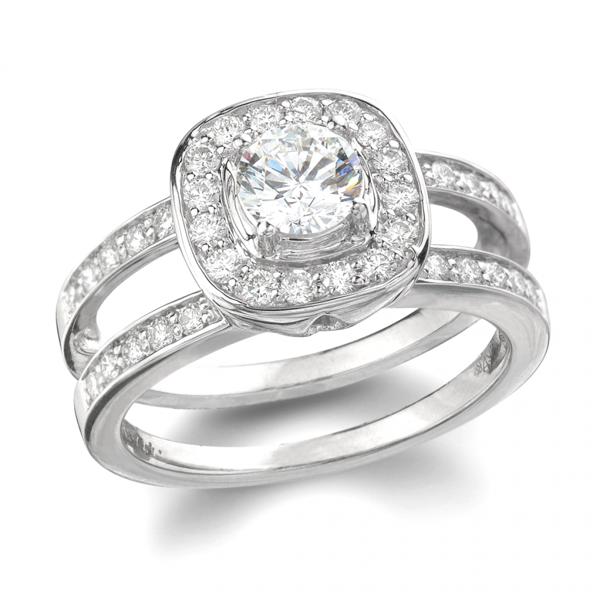 14kt. White Gold 1 1/4ctw RBC Diamond 2 PC Halo Bridal Split Shank Insert Engagement Ring With Matching Band