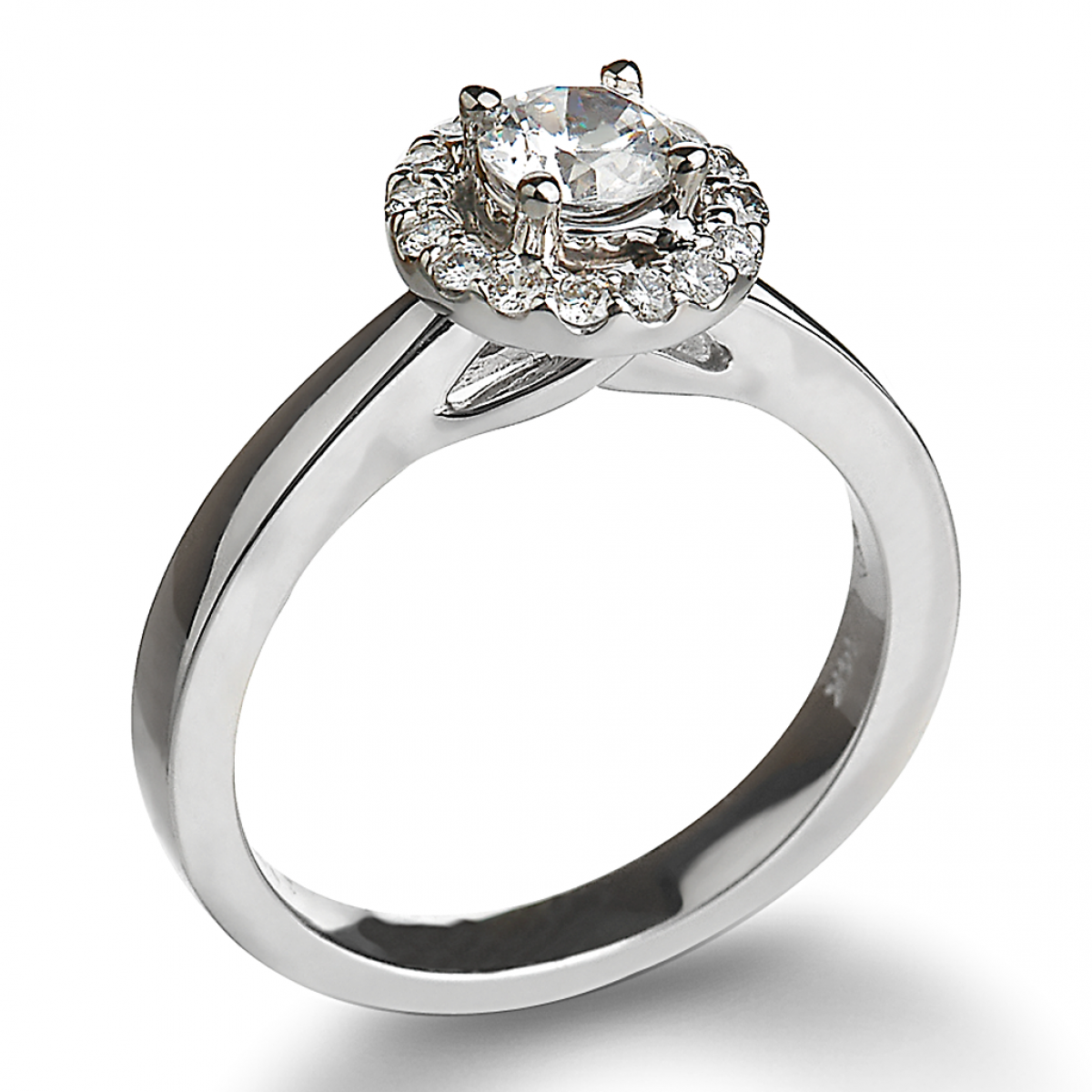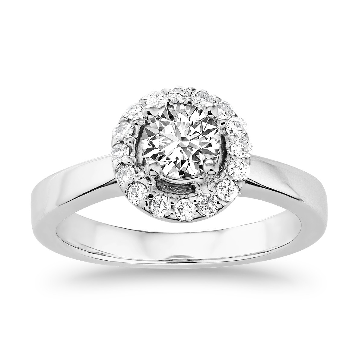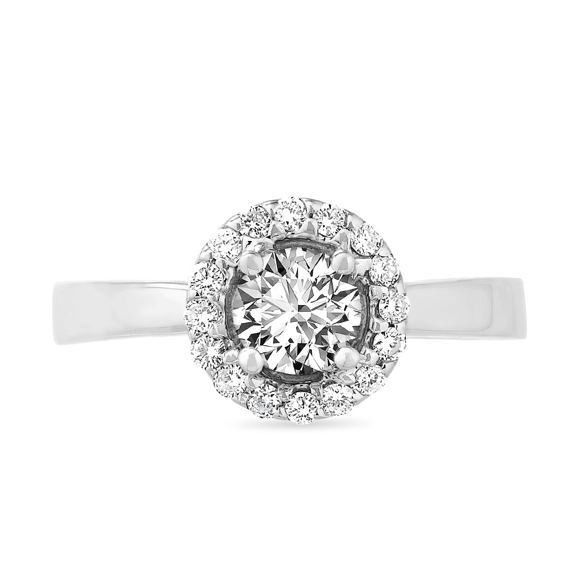 14kt. White Gold 3/4ctw. RBC Diamond Round Halo Engagement Ring with High Polished Shank