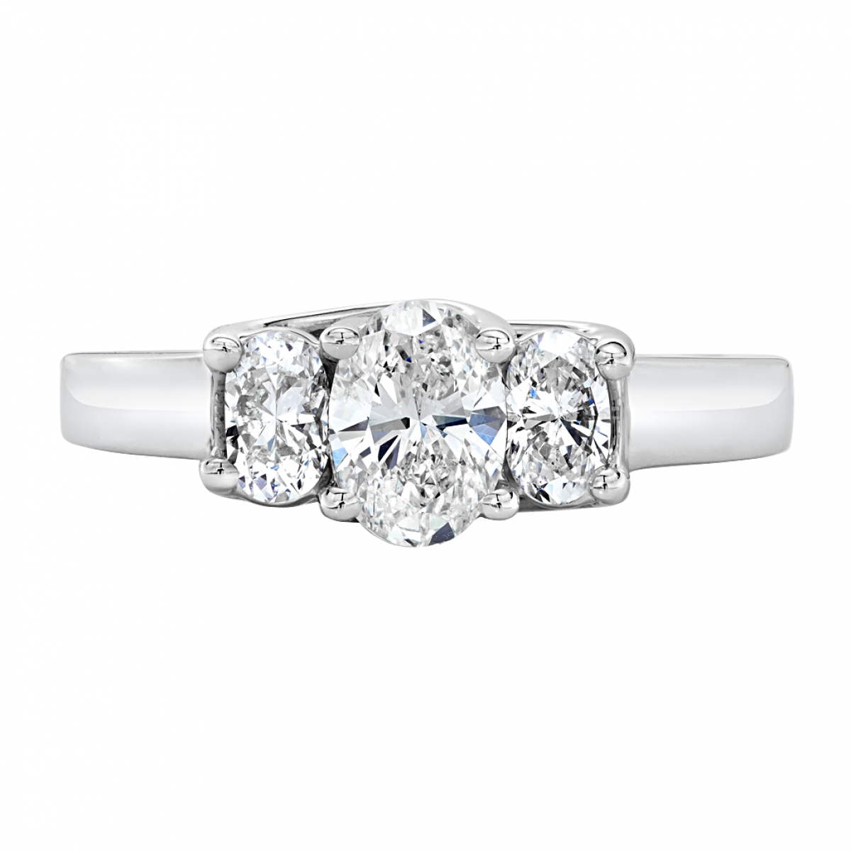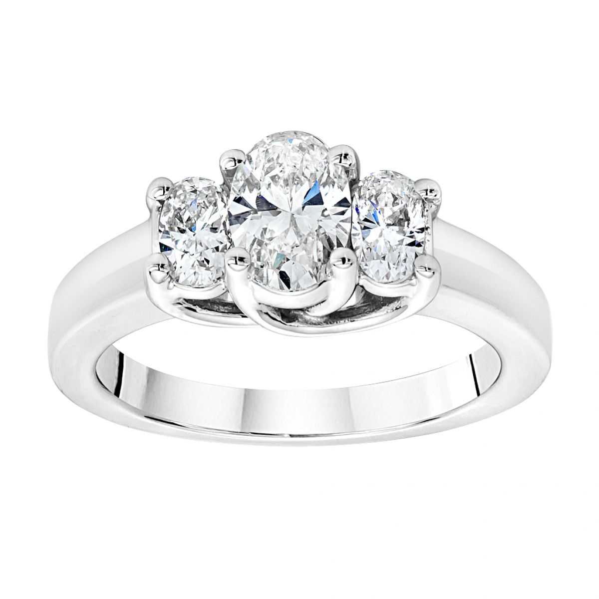 14kt. White Gold 1 3/8ctw Oval Cut Trellis Design Prong Set Three-Stone Engagement Ring