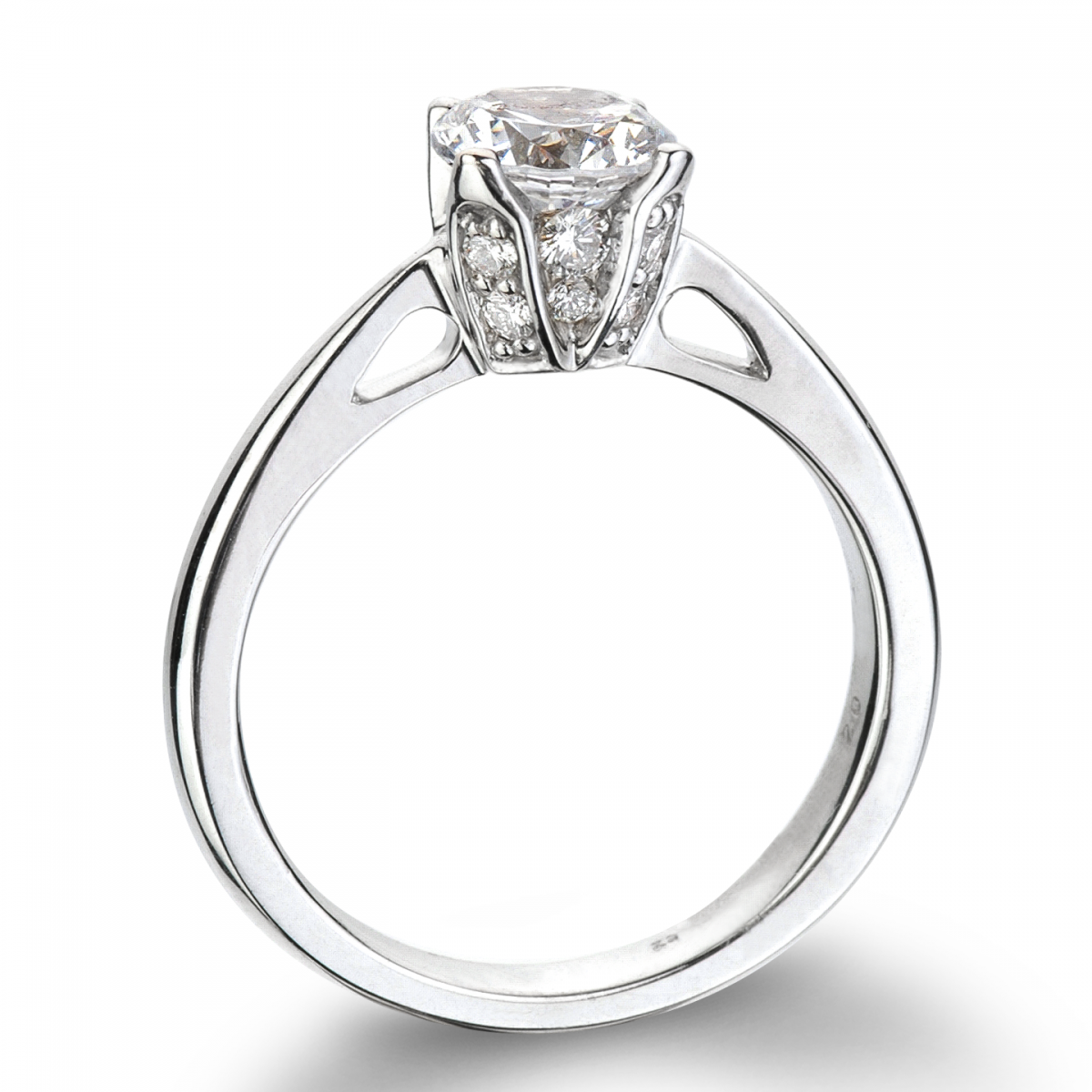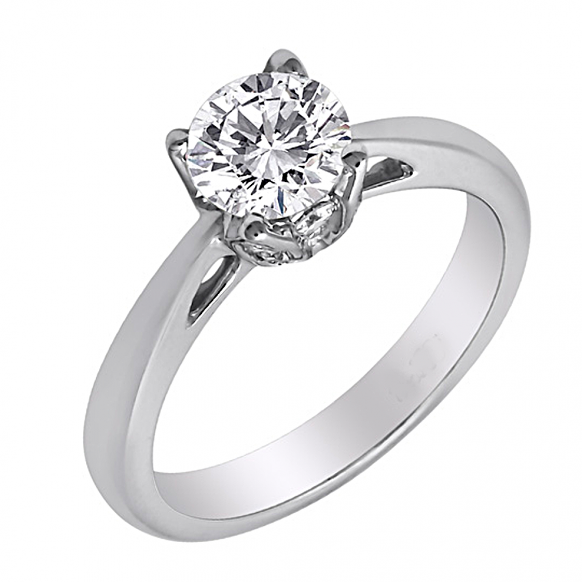 14kt. White Gold 1 1/5ctw RBC Diamond Solitaire Ring With Pin Set Diamond Studded Head
